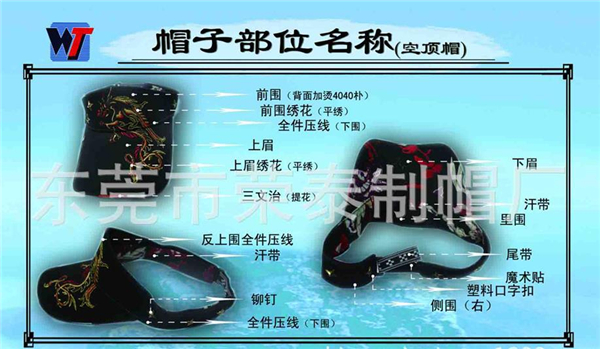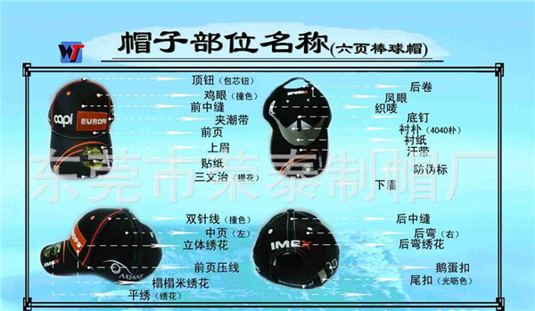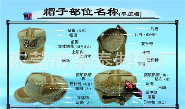 定制帽子廠家:常見(jiàn)帽子種類及帽子部位名稱