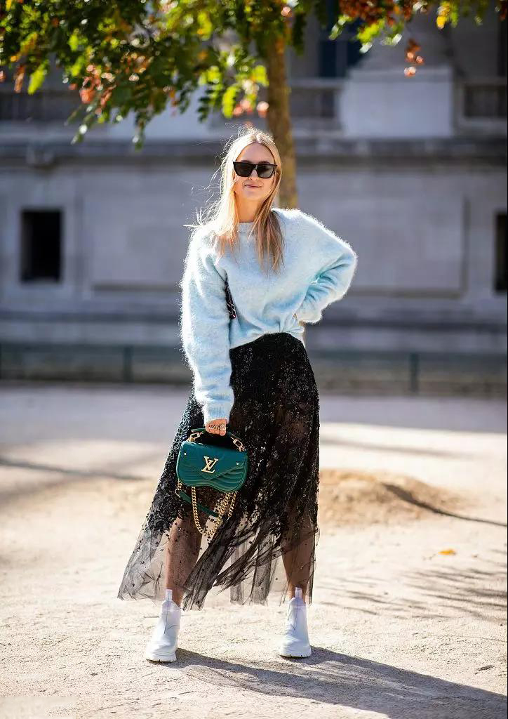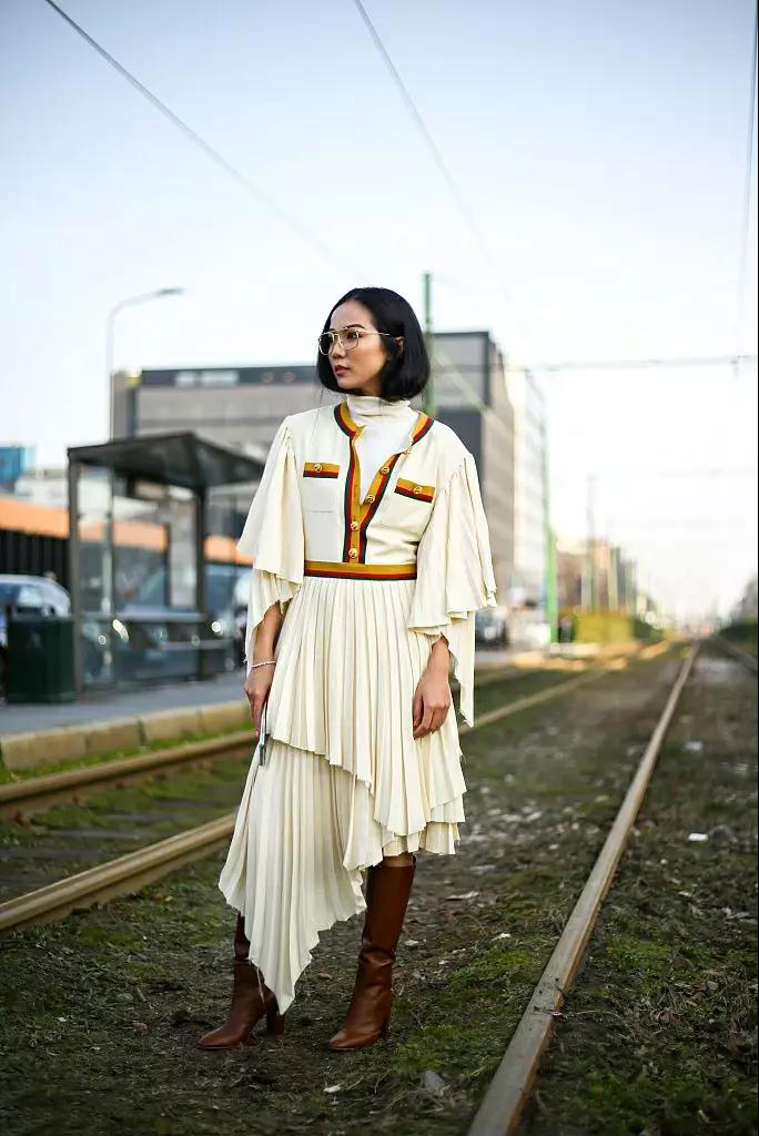 小個(gè)子是不是不能穿長(zhǎng)裙呢?歐美博主Jenny Walton小西裝+拖地長(zhǎng)裙的搭配確實(shí)讓她看起來(lái)有點(diǎn)顯腿短,但是挑選到合適的長(zhǎng)裙小個(gè)子的女生也是可以穿得好看的。裙子短一點(diǎn),完整露出腳踝,只需幾公分,出來(lái)的感覺(jué)就會(huì)天差地別。