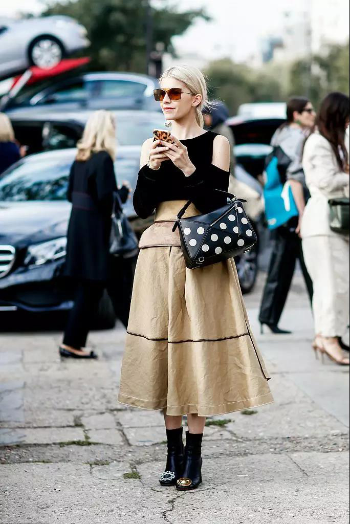 時(shí)尚博主Caroline Daur也是H型身材,很瘦,但腰部曲線并不明顯。挑選那些自帶曲線的優(yōu)雅裙裝能幫助塑造凹凸有致的效果,例如收腰裙、A字裙、傘裙這些。另外還有X裙型——肩膀和裙擺有一些分量感而腰部貼合,它能幫你打造出沙漏身材,自然塑形。